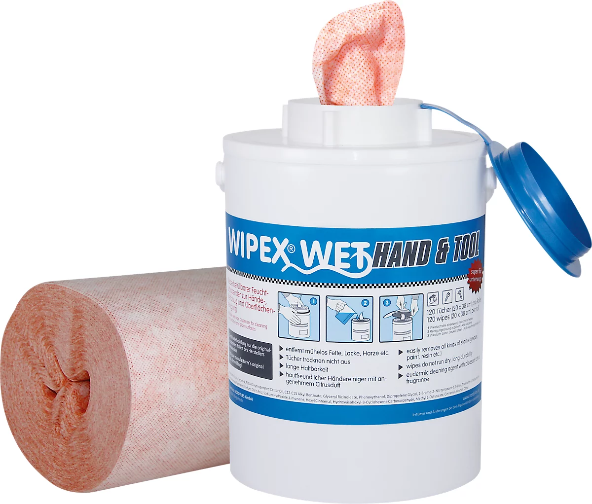 Das Wipex Hand and Tool Starterset bietet Ihnen einen Spender, eine Rolle mit 120 Tüchern und einen Reiniger mit 1000 ml. Der Spender lässt sich jederzeit mit passenden Rollen und Reinigungsflüssigkeit wiederverwenden.