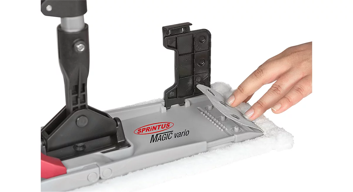 Der hochwertige Flachmopphalter Magic Vario ist hier im praktischen Komplettset erhältlich. Er bietet eine Aufrechtfunktion und einen Klapphalter mit einer Breite von wahlweise 400 oder 500 mm.