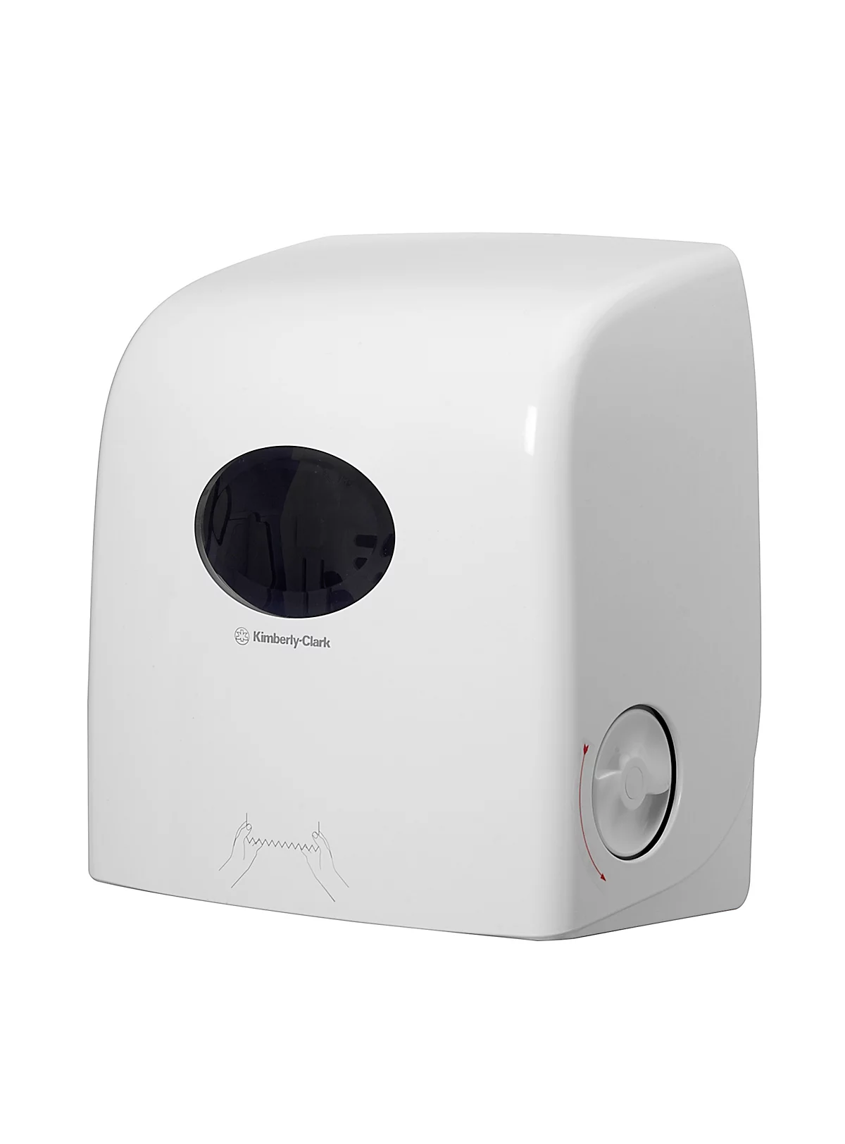 Dieser Handtuchrollenspender Aquarius Slimroll 6953 der Marke Kimberly Clark eignet sich für Rollen mit einer Länge von bis zu 165 Metern. Es können diverse Rollen der Serie Slimroll von Scott® eingesetzt werden.