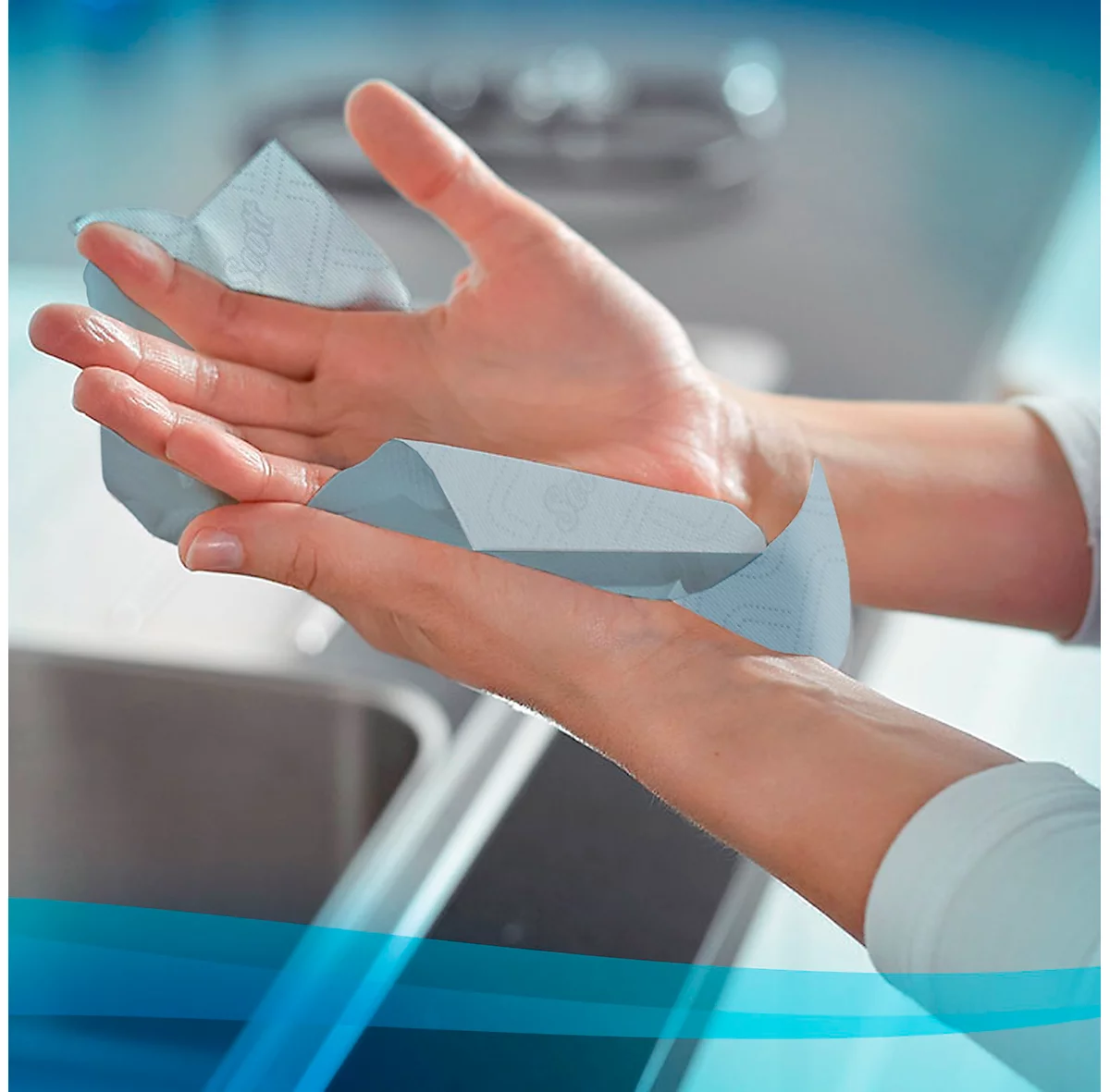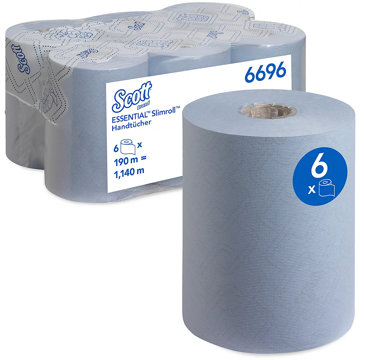 Die in Blau gehaltenen Scott Essential Slimroll Rollenpapiertücher 6696 erreichen durch ihre Ausrüstung mit moderner Airflex™ Technologie eine besonders starke Saugkraft. Diese bleibt sogar erhalten, wenn ein Papiertuch nass ist und unterstützt einen sparsamen Verbrauch.