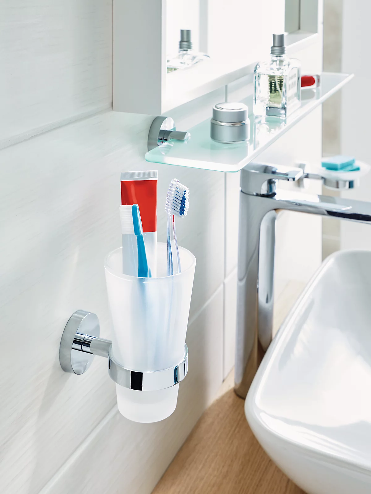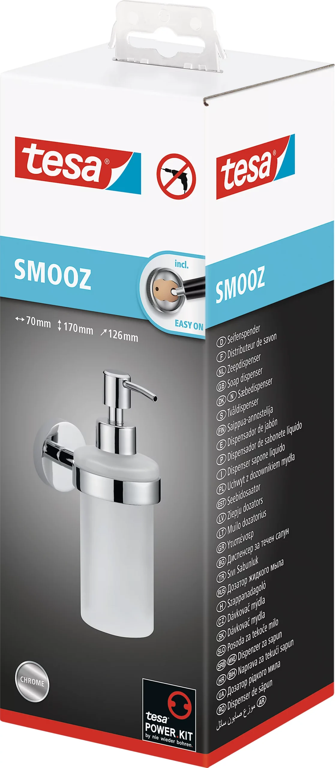 Mit dem tesa® SMOOZ Seifenspender-Set setzen Sie einen eleganten Akzent im Bad. Runde Formen, satiniertes Glas und leicht glänzende Oberflächen machen aus dem Seifenspender-Set einen zeitlosen Klassiker, der jeden Haushalt aufwertet. Zudem ist er überaus praktisch und lässt sich dank innovativer Klebelösung ohne Bohren anbringen – und auch wieder entfernen. So bleiben Ihre Wände immer unbeschädigt. Die Flasche fasst 200ml und kann selbstverständlich nachgefüllt werden. Mit einem neuen Adapter (BK20) können Sie das elegante Badzubehör sogar wiederverwenden. tesa.Power.Kit Glue: Achtung! Bei der Verwendung kann gefährlicher lungengängiger Staub entstehen. Staub nicht einatmen.