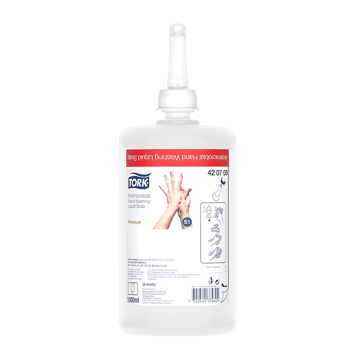 Die Seife ist auf das Liquid soap system S1 von Tork ausgelegt, mit manuellen Spendern kompatibel und kann in Waschräumen eingesetzt werden. Zudem eignet sich die geruchslose Flüssigseife auf der Basis von Milchsäure perfekt für Bereiche mit Lebensmittelverarbeitung. Die Seife ist wirksam gegenüber aller behüllter Viren, darunter auch SARS Corona.
