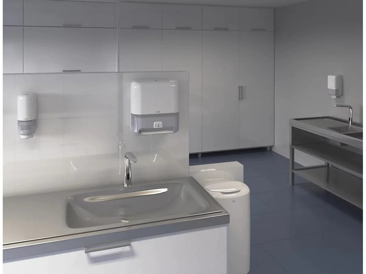 Setzen Sie den Papierhandtuchspender Tork Matic® Elevation Design H1 von Tork® in stark frequentierten Betriebsbereichen wie etwa Waschräumen oder Eingangshallen ein, um dort im Handumdrehen für gesundheitsfördernde Sauberkeit und Hygiene zu sorgen.
