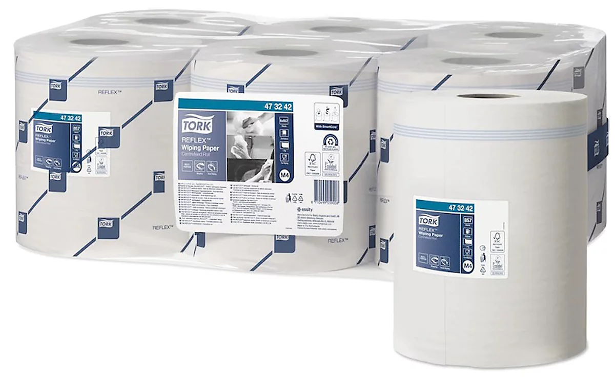 Die 1-lagigen Mehrzweck-Papierwischtücher Reflex 473242 der Marke Tork haben mit einer Länge von 300 Metern eine äußerst hohe Kapazität, bevor sie ausgewechselt werden müssen.