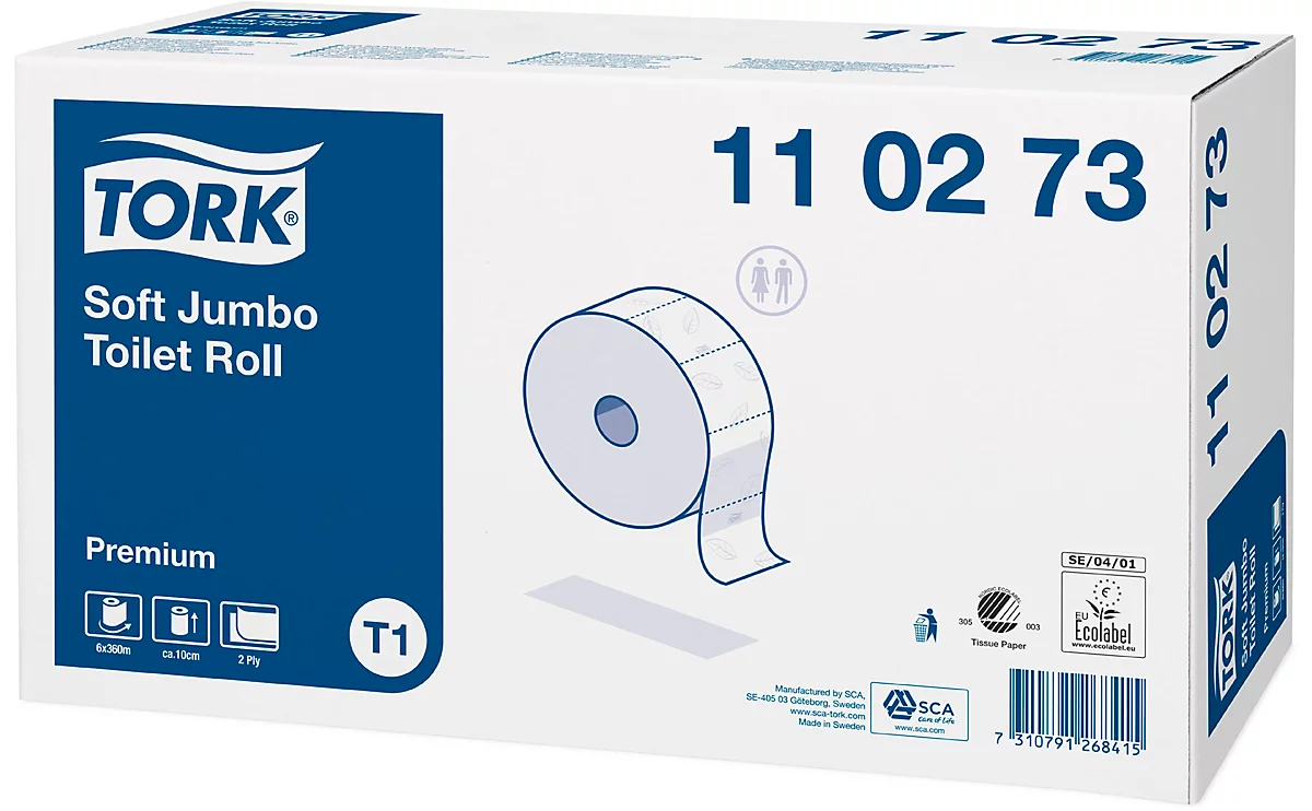 Tork® Toilettenpapier Mini Jumbo Advanced 120280, 2-lagig, Mit Prägung, 12 Rollen á 850 Blatt, Weiß