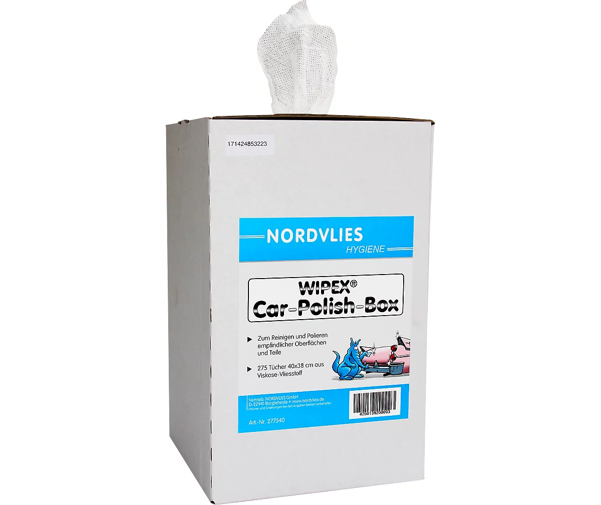 - Car-Polish-Box: 1 Rolle á 275 Tücher, Materialstärke 50 g/m², Tuchformat 400 x 380 mm